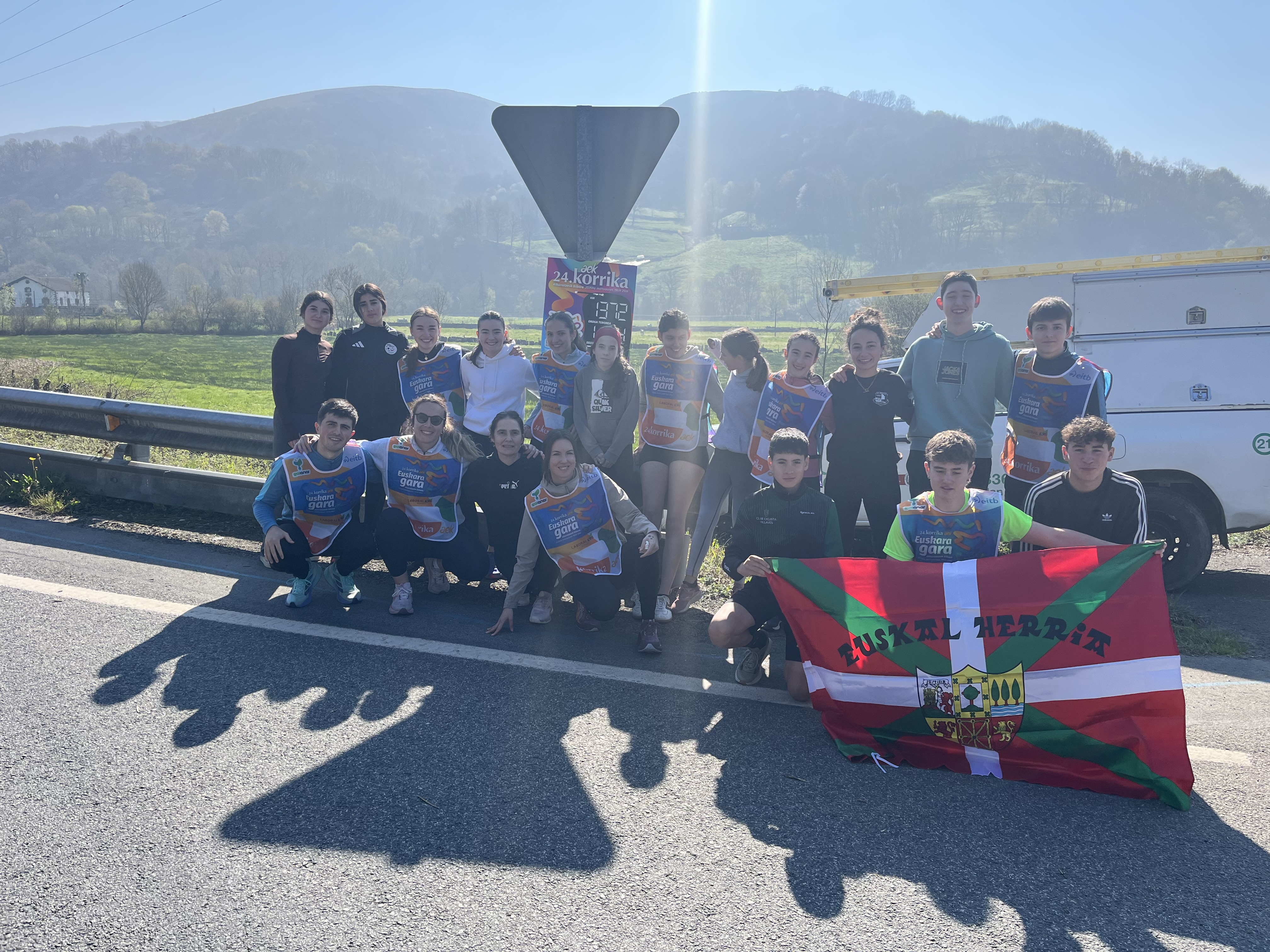 El kilómetro correspondiente a nuestro centro estaba en el casco de Elbetea, partiendo desde la rotonda en dirección a Arizkun (kilómetro 1372). Ese tramo lo han realizado alumnos voluntarios.